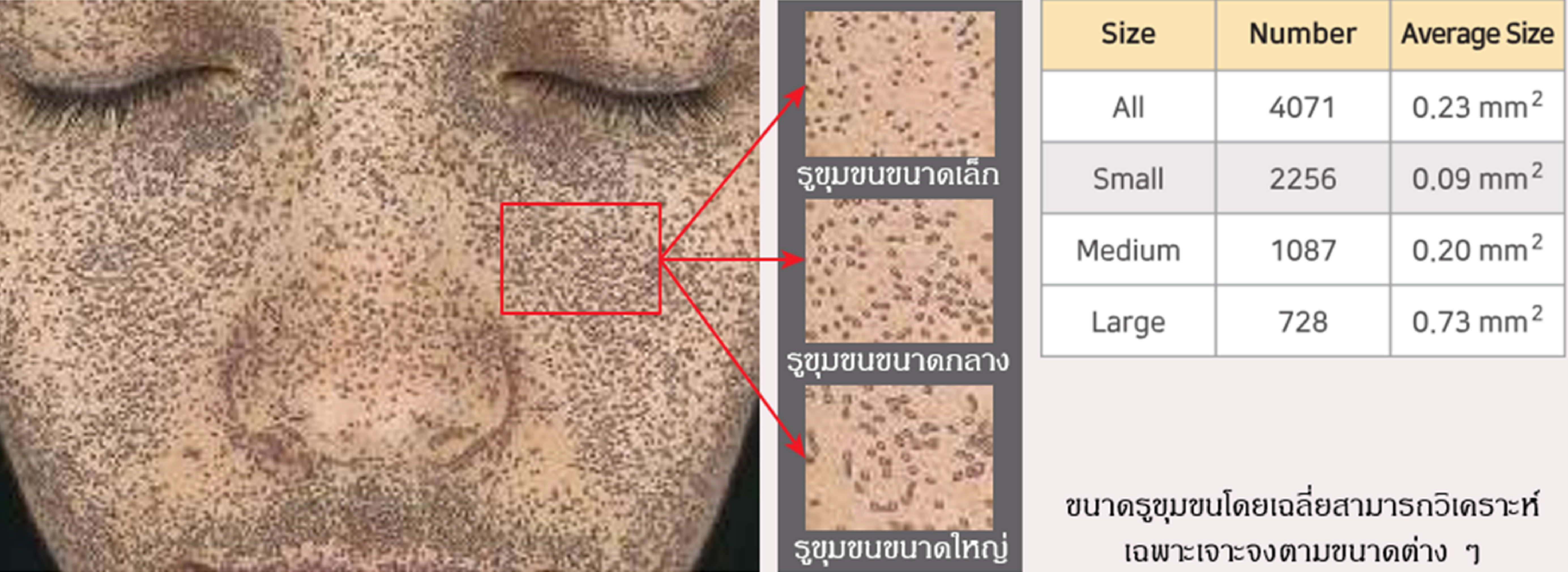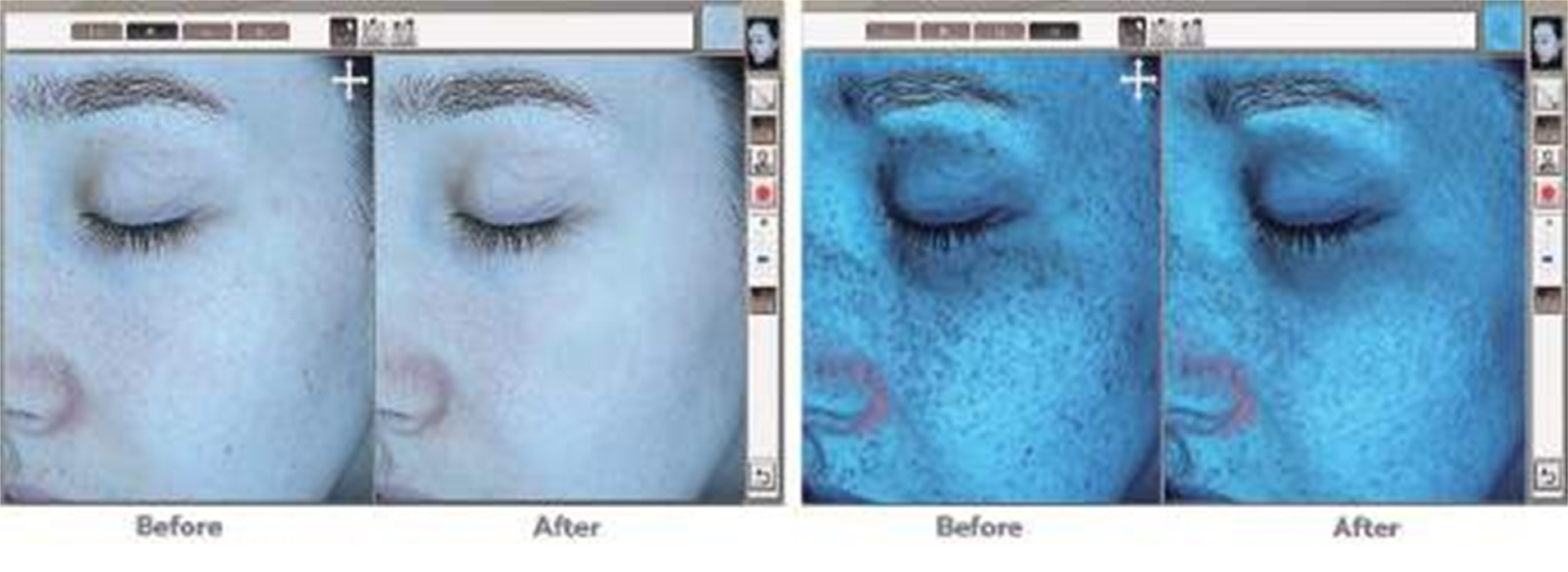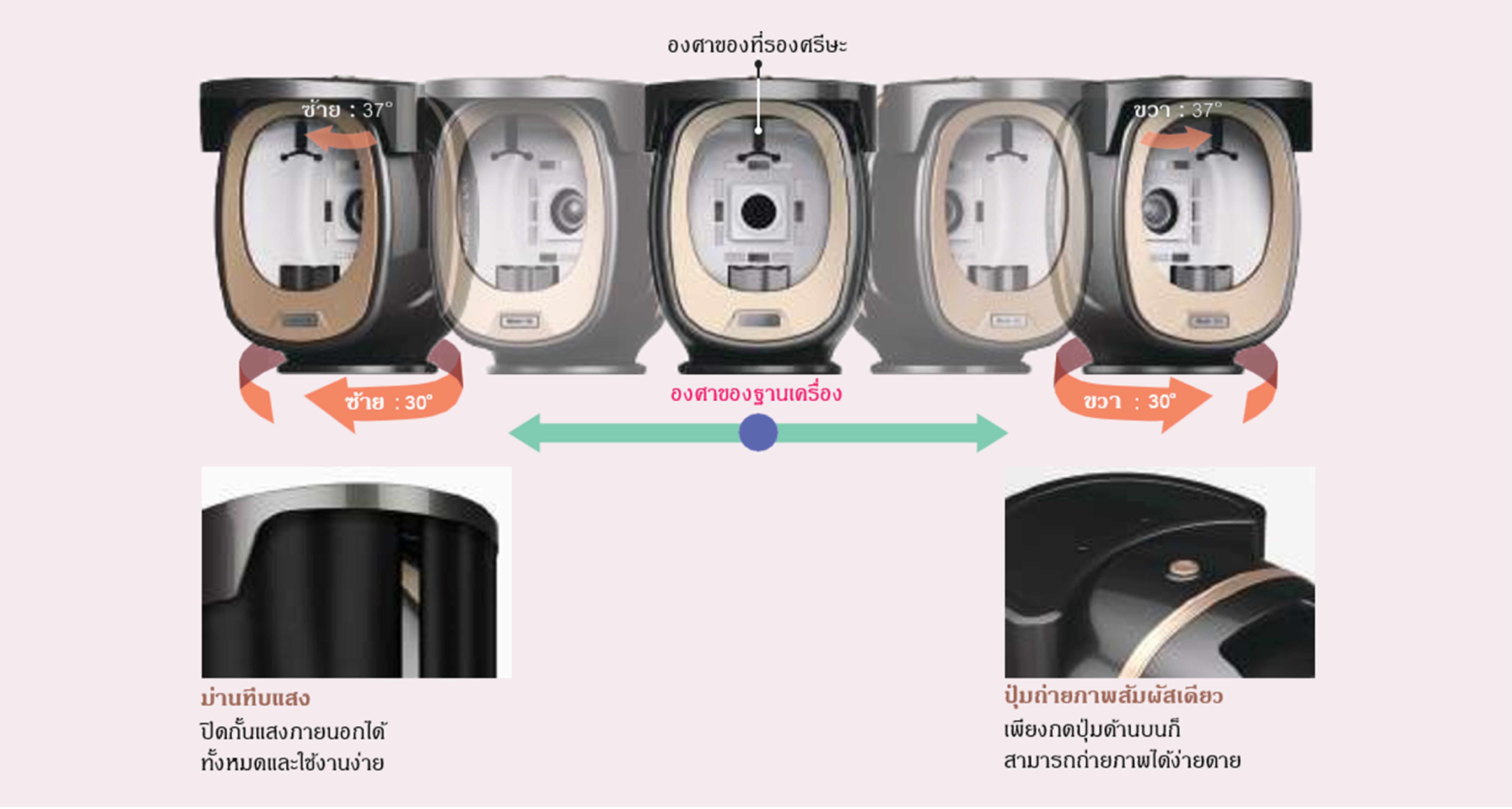 เครื่องวิเคราะห์สภาพผิวหน้าด้วยแหล่งกำเนิดแสงแอลอีดี 4 แบบ ได้แก่ แสงปกติ, แสงยูวี, แสงสะท้อน และแสงโพลาไรซ์
